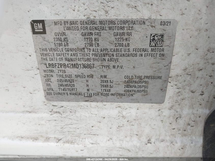 2021 BUICK ENVISION - LRBFZPR42MD136867, колір - Білий, 2.0, Бензин, Повний привід із США