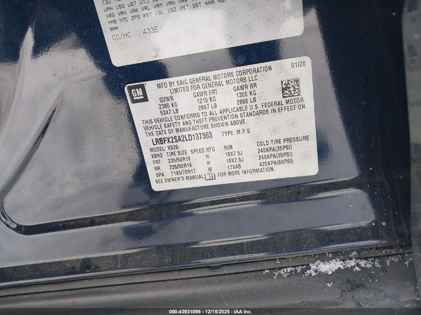 2020 BUICK ENVISION - LRBFX2SA2LD137363, колір - Синій, 2.5, Бензин, Повний привід із США
