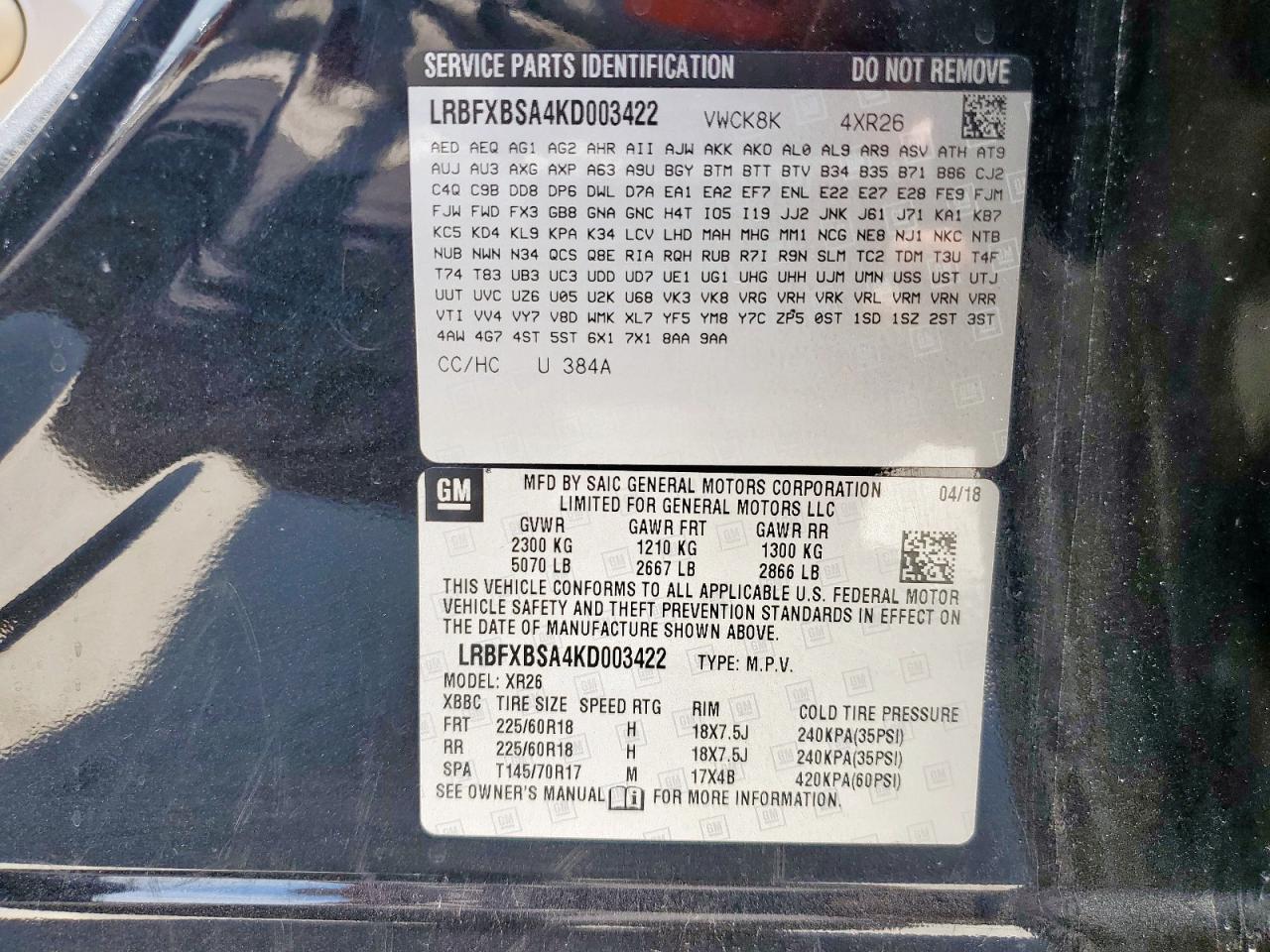 2019 BUICK ENVISION - LRBFXBSA4KD003422, колір - Чорний, 2.5, Бензин, із США