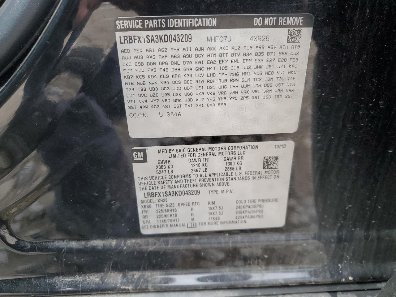 Колір ЧорнийЦиліндри 4Привід Повний привідVIN LRBFX1SA3KD043209Стан Заводиться та їде (перевірено)Ушкодження Передня або задняДата аукціона 2025-10-09