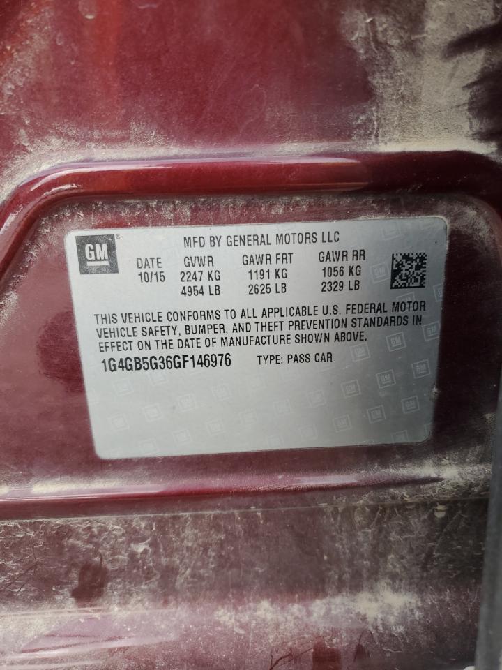 2016 BUICK LACROSSE - 1G4GB5G36GF146976, колір - Бордовий, 3.6, Бензин, із США
