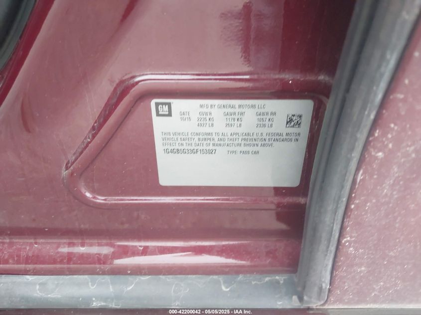 2016 BUICK LACROSSE - 1G4GB5G33GF153027, колір - Бургундія, 3.6, Бензин, Передній привід із США