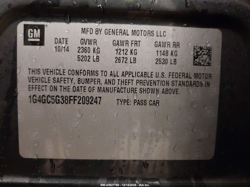 2015 BUICK LACROSSE - 1G4GC5G38FF209247, колір - Чорний, 3.6, Бензин, Повний привід із США