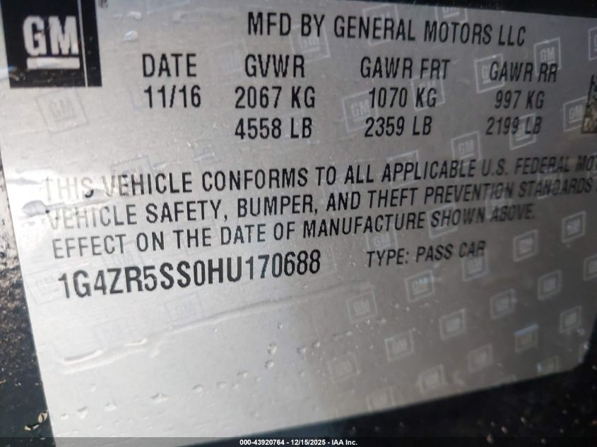 2017 BUICK LACROSSE - 1G4ZR5SS0HU170688, колір - Чорний, 3.6, Бензин, Передній привід із США