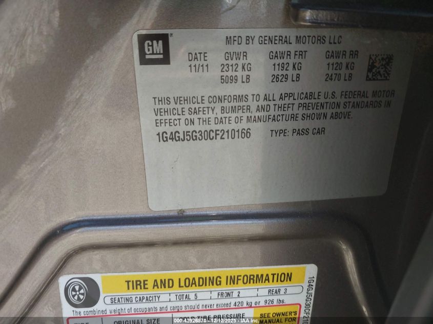 2012 BUICK LACROSSE - 1G4GJ5G30CF210166, колір - Коричневий, 3.6, Бензин, Передній привід із США