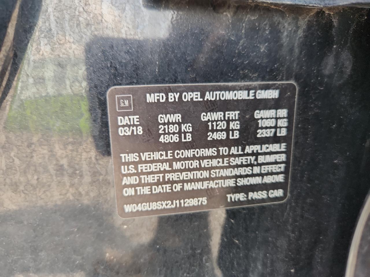 2018 BUICK REGAL - W04GU8SX2J1129875, колір - Чорний, 2.0, Бензин, Повний привід із США