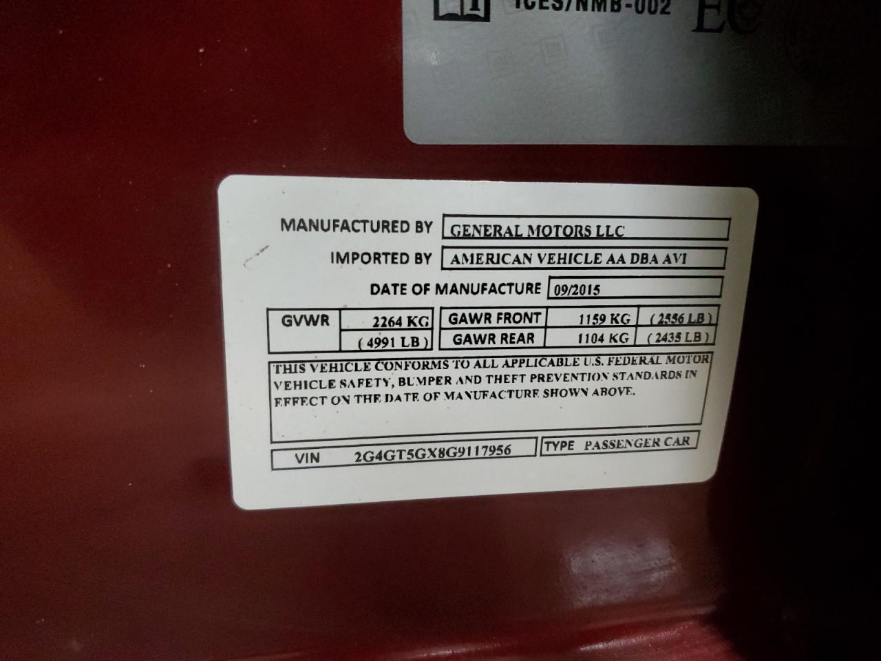 Колір БургундіяЦиліндри 4Привід Повний привідVIN 2G4GT5GX8G9117956Стан Заводиться та їде (перевірено)Ушкодження Передня або задняДата аукціона 2025-10-08