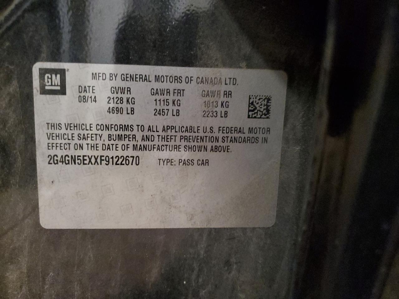 Колір ЧорнийЦиліндри 4VIN 2G4GN5EXXF9122670Стан Заводиться та їде (перевірено)Ушкодження З боківДата аукціона 2025-10-10