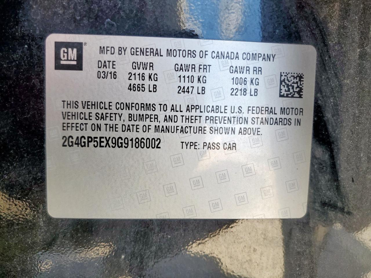 Колір ЧорнийЦиліндри 4VIN 2G4GP5EX9G9186002Стан НевідомоУшкодження З боківДата аукціона 2025-10-10