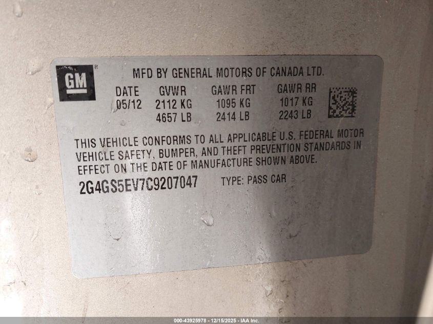 2012 BUICK REGAL - 2G4GS5EV7C9207047, колір - Срібний, 2.0, Бензин, Передній привід із США