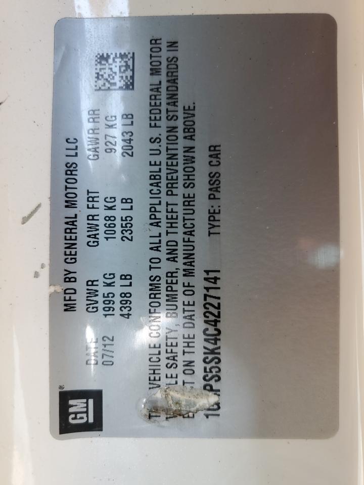 2012 BUICK VERANO - 1G4PS5SK4C4227141, колір - Білий, 2.4, Бензин, із США