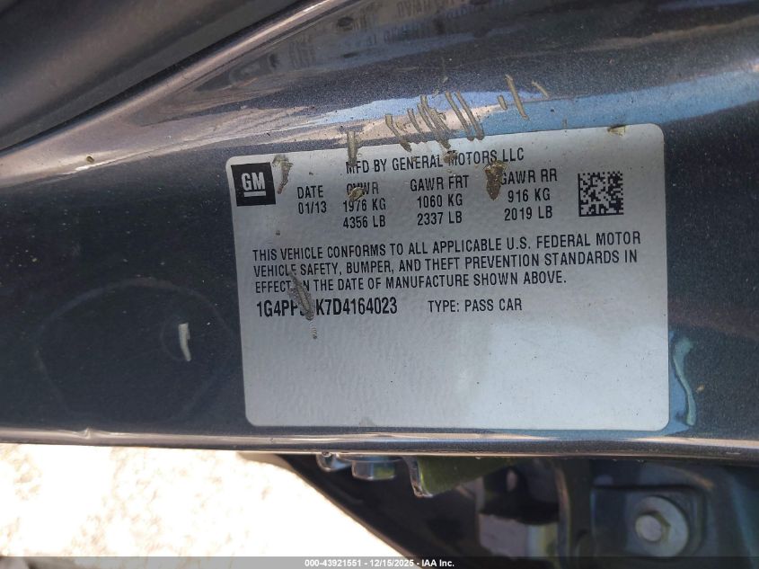 2013 BUICK VERANO - 1G4PP5SK7D4164023, колір - Сірий, 2.4, Бензин, Передній привід із США