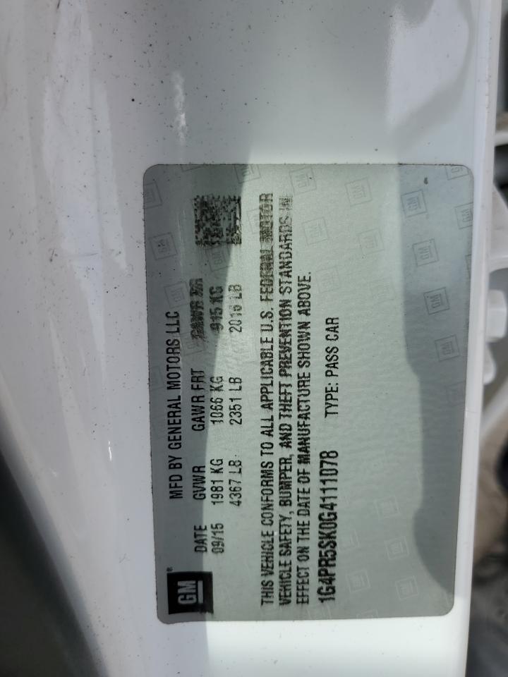 2016 BUICK VERANO - 1G4PR5SK0G4111078, колір - Білий, 2.4, Бензин, із США