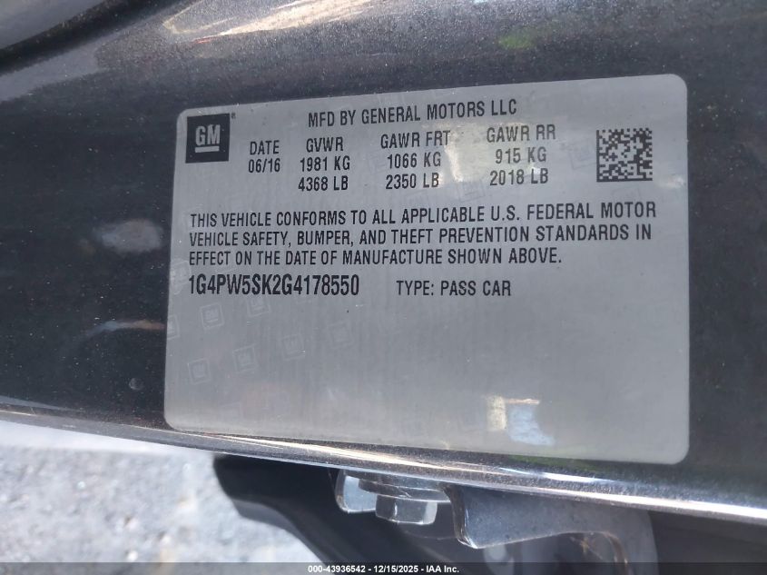2016 BUICK VERANO - 1G4PW5SK2G4178550, колір - Сірий, 2.4, Бензин, Передній привід із США