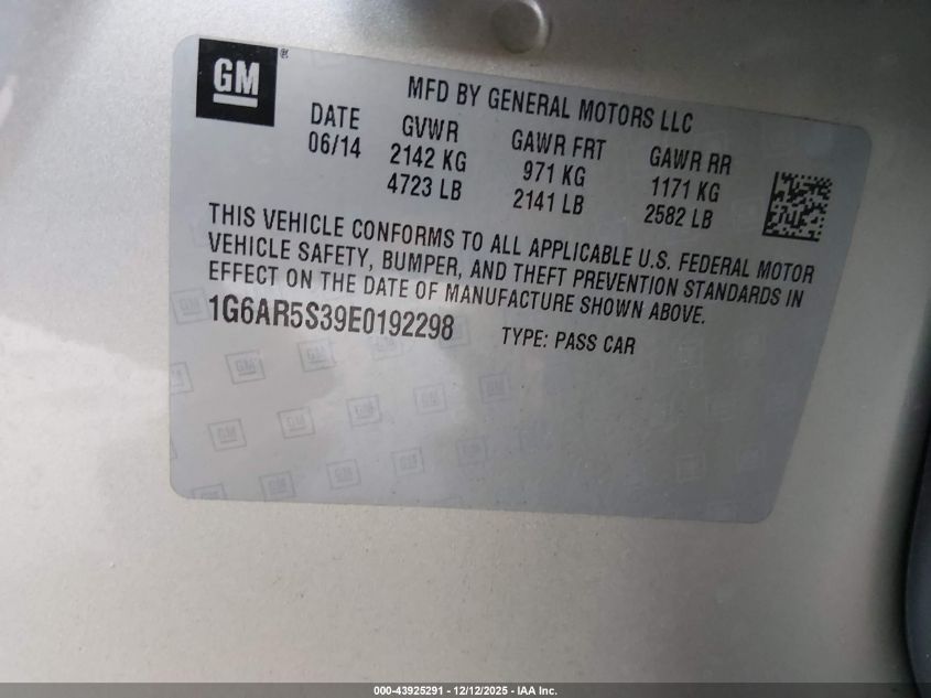2014 CADILLAC CTS - 1G6AR5S39E0192298, колір - Золотий, 3.6, Бензин, Задній привід із США