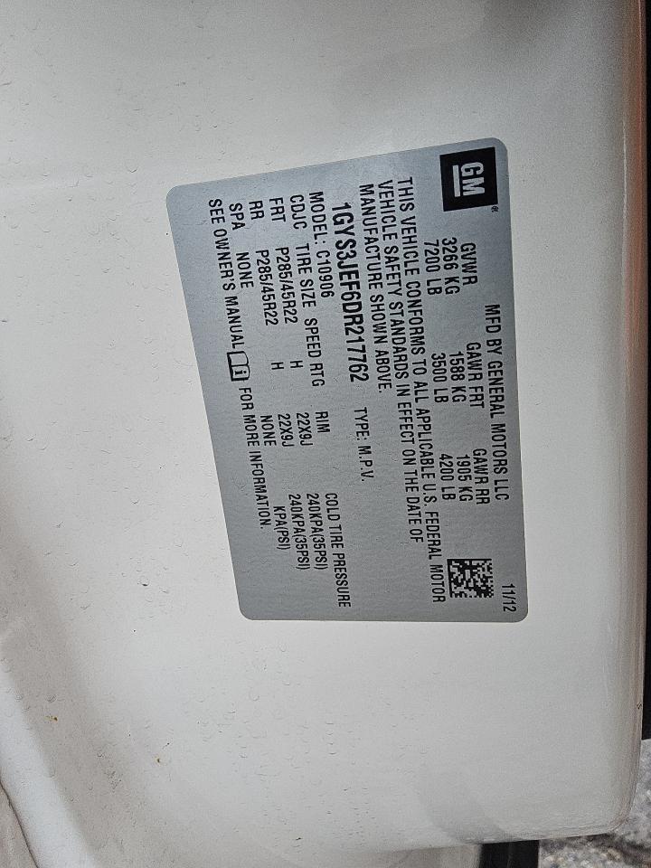 2013 CADILLAC ESCALADE - 1GYS3JEF6DR217762, колір - Білий, 6.2, Бензин, Задній привід із США