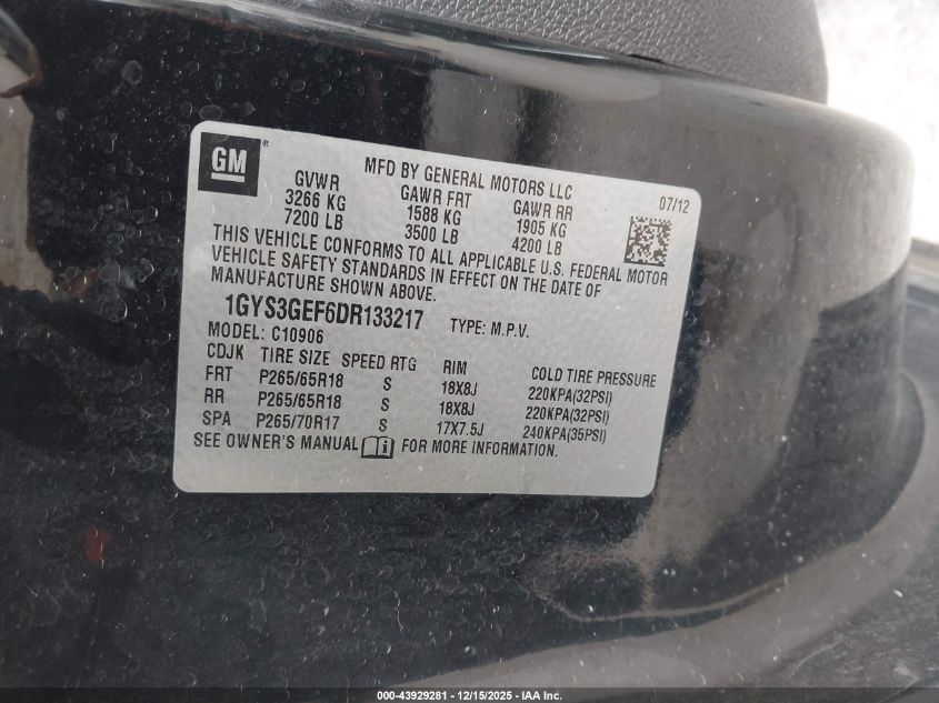 2013 CADILLAC ESCALADE - 1GYS3GEF6DR133217, колір - Чорний, 6.2, Бензин, із США