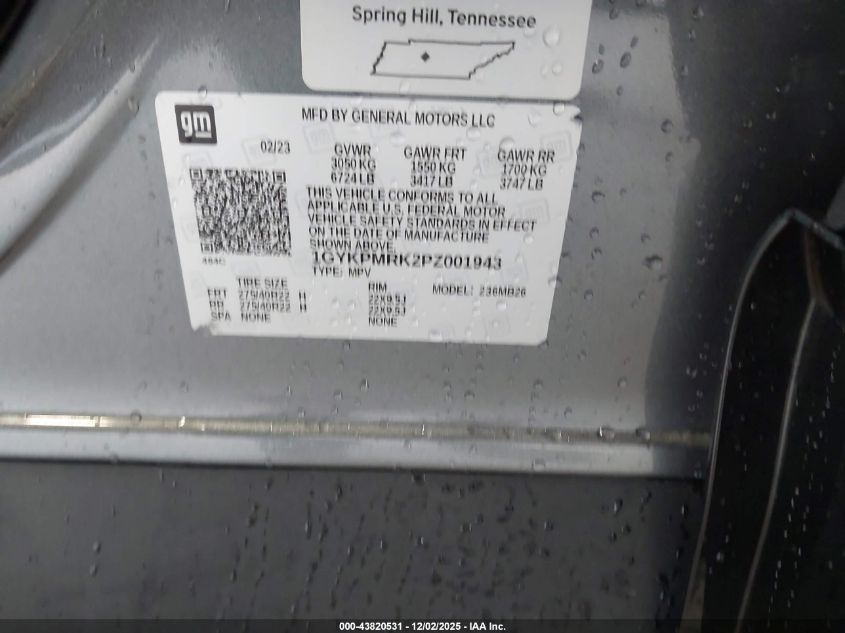 2023 CADILLAC LYRIQ - 1GYKPMRK2PZ001943, колір - Сірий, 0.0, Електричний, із США