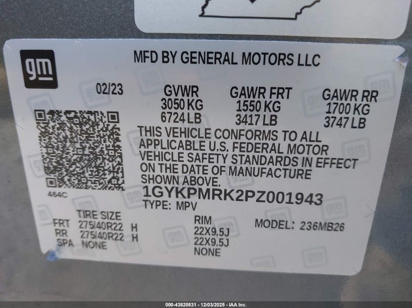 Колір СірийVIN 1GYKPMRK2PZ001943Стан НевідомоУшкодження Права сторона