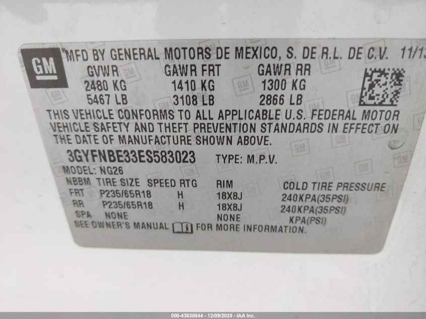 Колір БілийЦиліндри 6Привід Передній привідVIN 3GYFNBE33ES583023Стан СтаціонарноУшкодження Передня права
