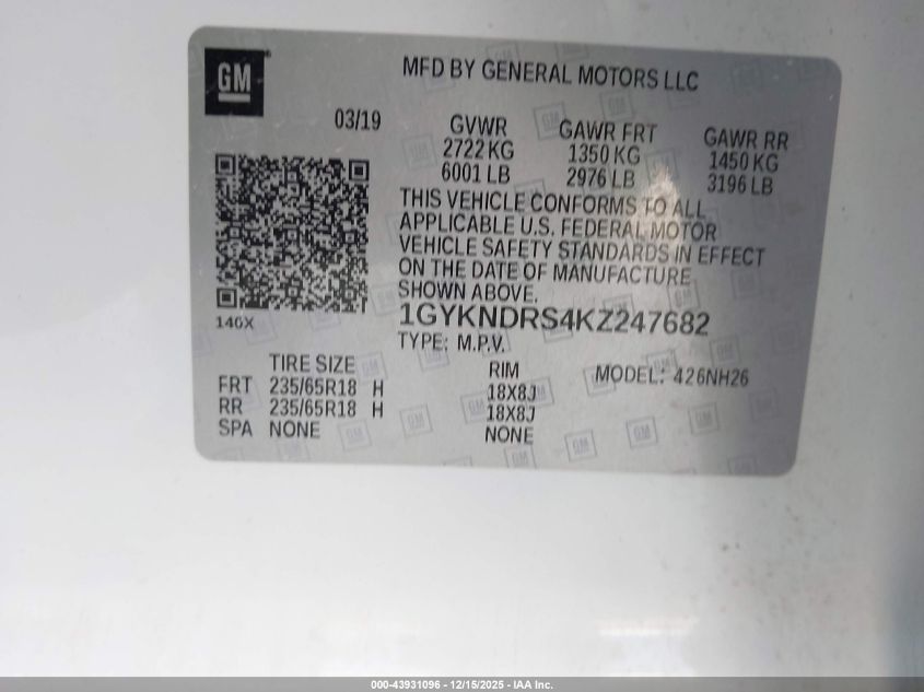 Колір БілийЦиліндри 6Привід Повний привідVIN 1GYKNDRS4KZ247682Стан Заводиться та їде (перевірено)Ушкодження Передня або задня