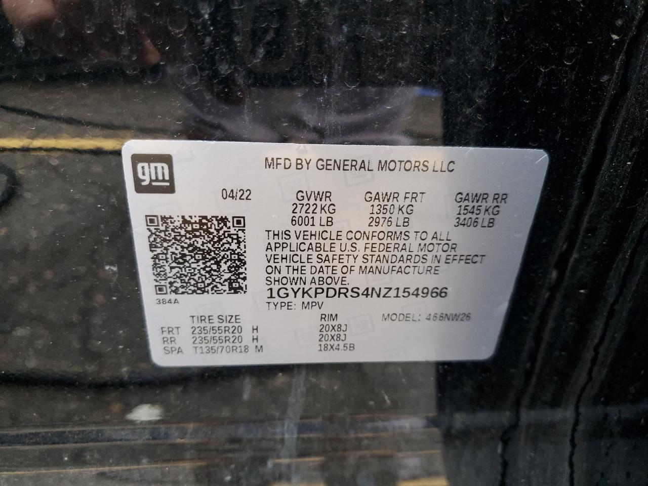 Колір ЧорнийЦиліндри 6Привід Повний привідVIN 1GYKPDRS4NZ154966Стан НевідомоУшкодження ВодаДата аукціона 2025-10-07