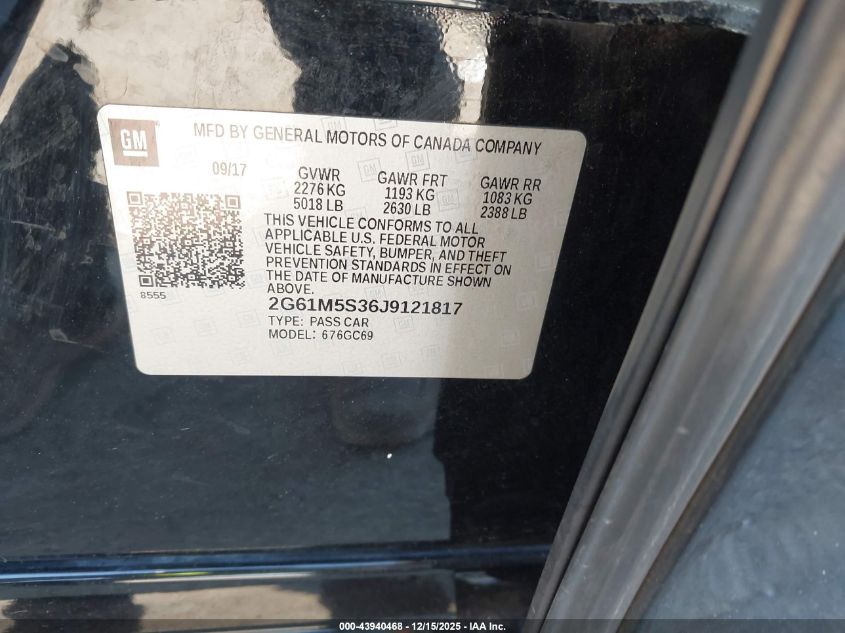 Колір ЧорнийЦиліндри 6Привід Передній привідVIN 2G61M5S36J9121817Стан Заводиться та їде (перевірено)Ушкодження Передня або задня