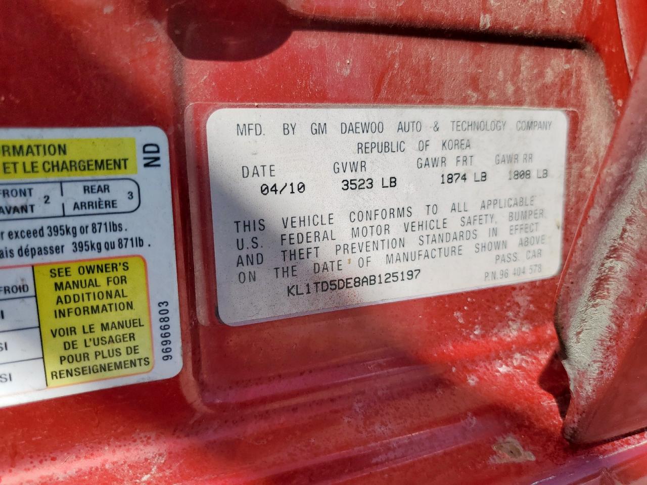 2010 CHEVROLET AVEO - KL1TD5DE8AB125197, колір - Червоний, 1.6, Бензин, із США