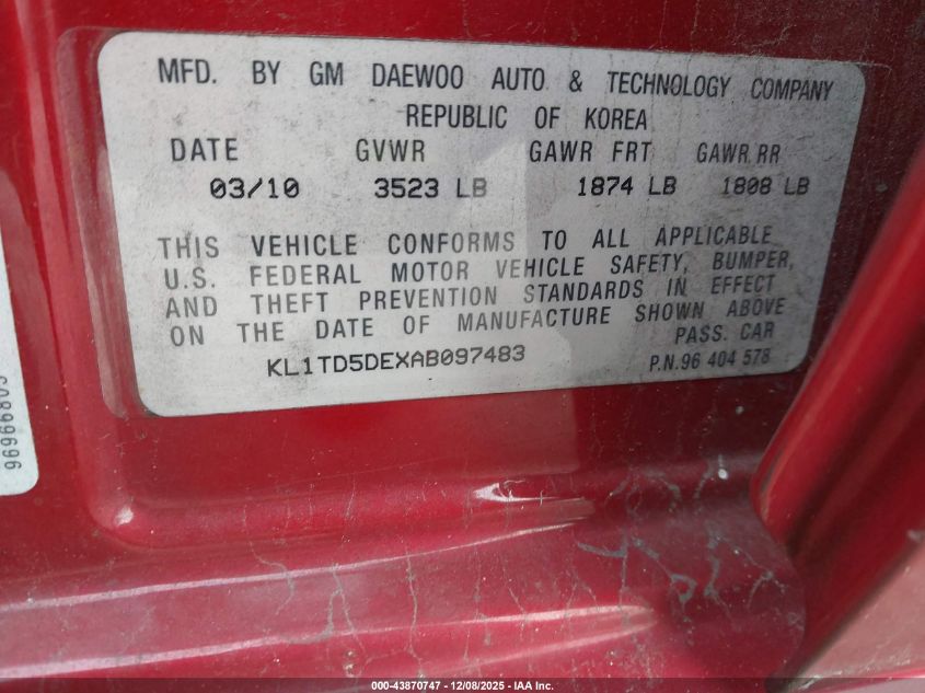 2010 CHEVROLET AVEO - KL1TD5DEXAB097483, колір - Червоний, 1.6, Бензин, Передній привід із США