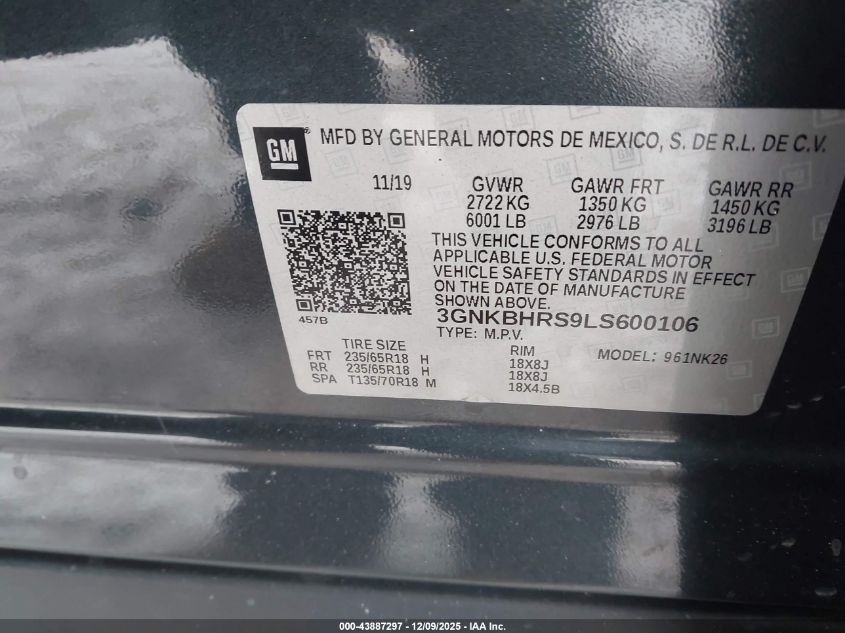 Колір ЧорнийЦиліндри 6Привід Повний привідVIN 3GNKBHRS9LS600106Стан СтаціонарноУшкодження Передня або задня