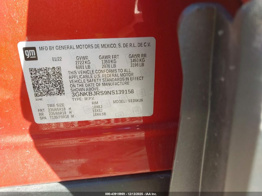2022 CHEVROLET BLAZER - 3GNKBJRS9NS139158, колір - Апельсиновий, 3.6, Бензин, Повний привід із США
