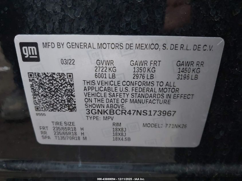 Колір ЧорнийЦиліндри 4Привід Передній привідVIN 3GNKBCR47NS173967Стан Заводиться та їде (перевірено)Ушкодження Передня або задня