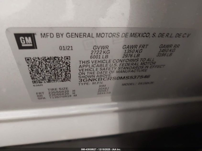 Колір СрібнийЦиліндри 6Привід Передній привідVIN 3GNKBCRS0MS537546Стан Заводиться та їде (перевірено)Ушкодження Права сторона