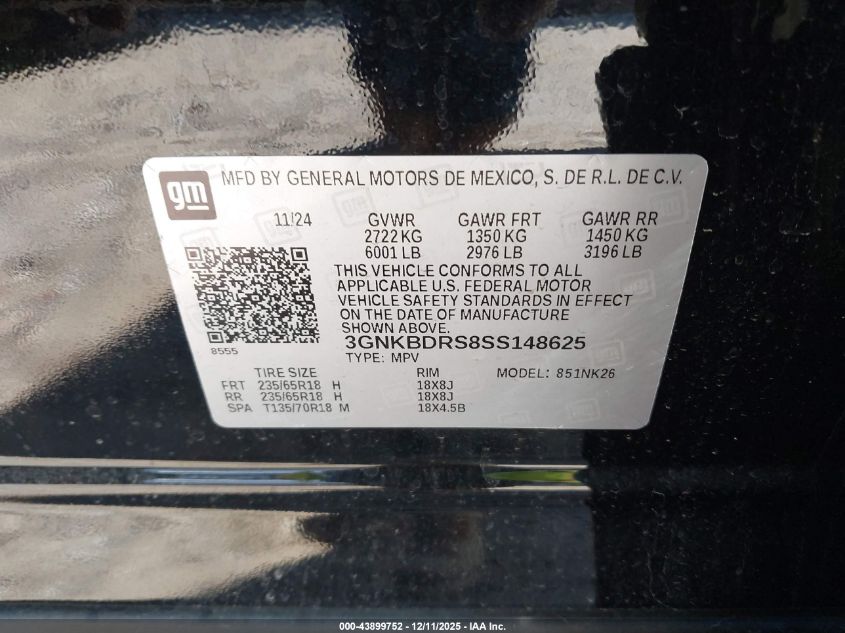 2025 CHEVROLET BLAZER - 3GNKBDRS8SS148625, колір - Чорний, 3.6, Бензин, Передній привід із США