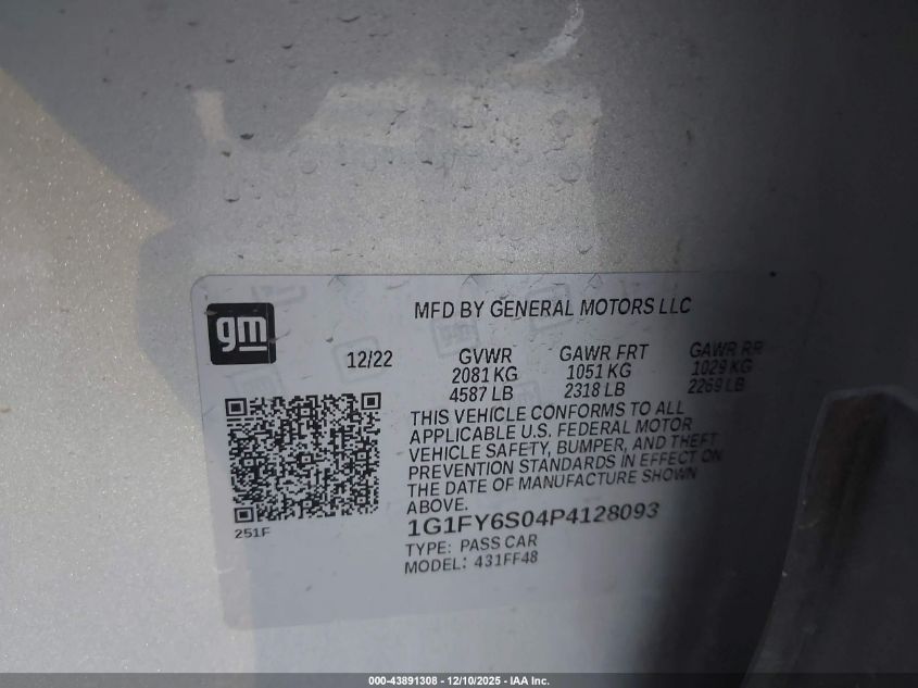 Колір СрібнийПривід Передній привідVIN 1G1FY6S04P4128093Стан СтаціонарноУшкодження Передня або задня