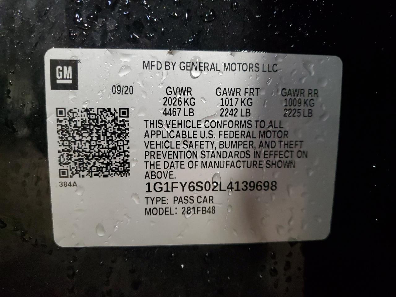 Колір ЧорнийVIN 1G1FY6S02L4139698Стан Заводиться та їде (перевірено)Ушкодження З боківДата аукціона 2025-10-13