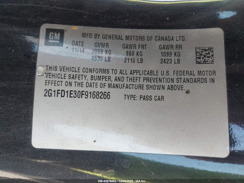 2015 CHEVROLET CAMARO - 2G1FD1E30F9168266, колір - Чорний, 3.6, Бензин, Задній привід із США