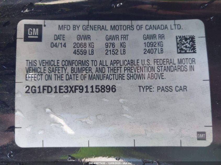2015 CHEVROLET CAMARO - 2G1FD1E3XF9115896, колір - Чорний, 3.6, Бензин, Задній привід із США