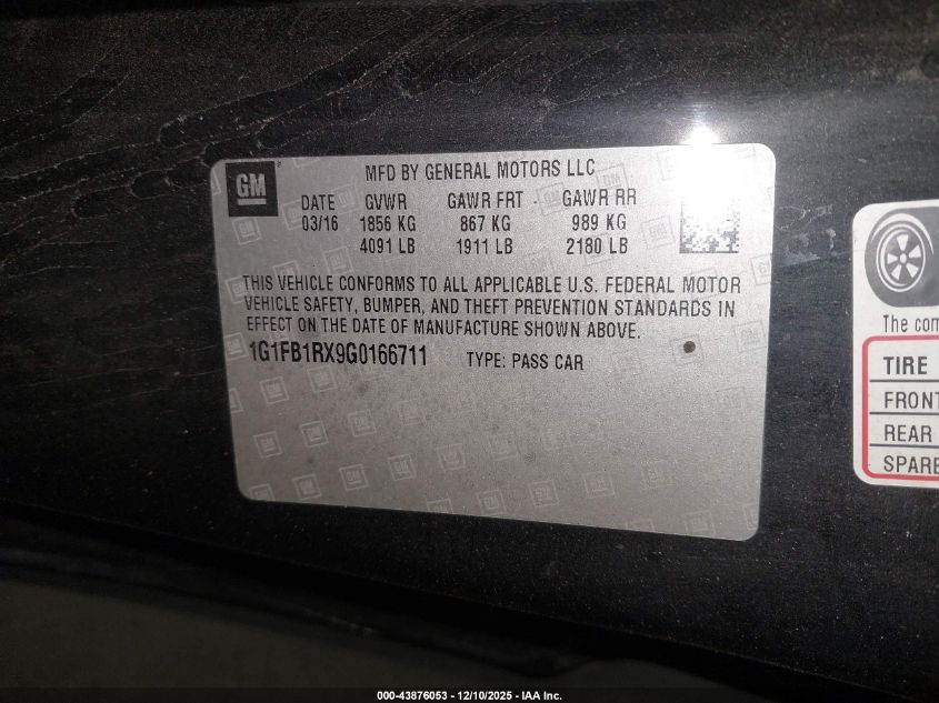 Колір ЧорнийЦиліндри 4Привід Задній привідVIN 1G1FB1RX9G0166711Стан СтаціонарноУшкодження Передня ліва