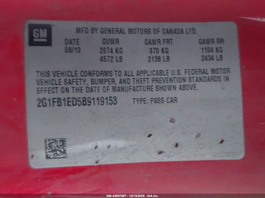 Колір ЧервонийЦиліндри 6Привід Задній привідVIN 2G1FB1ED5B9119153Стан Заводиться та їде (перевірено)Ушкодження Передня права