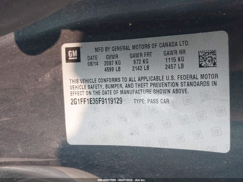 2015 CHEVROLET CAMARO - 2G1FF1E36F9119129, колір - Сірий, 3.6, Бензин, Задній привід із США