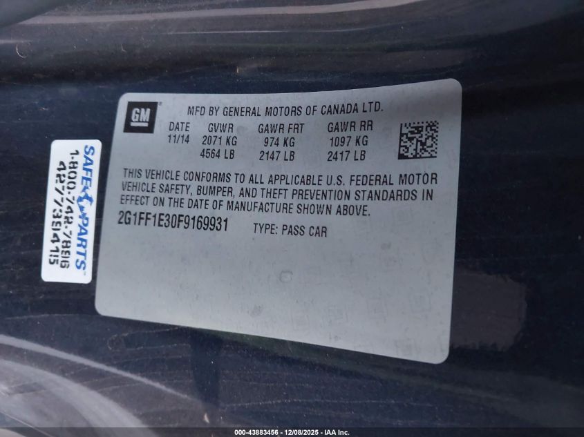 2015 CHEVROLET CAMARO - 2G1FF1E30F9169931, колір - Синій, 3.6, Бензин, Задній привід із США