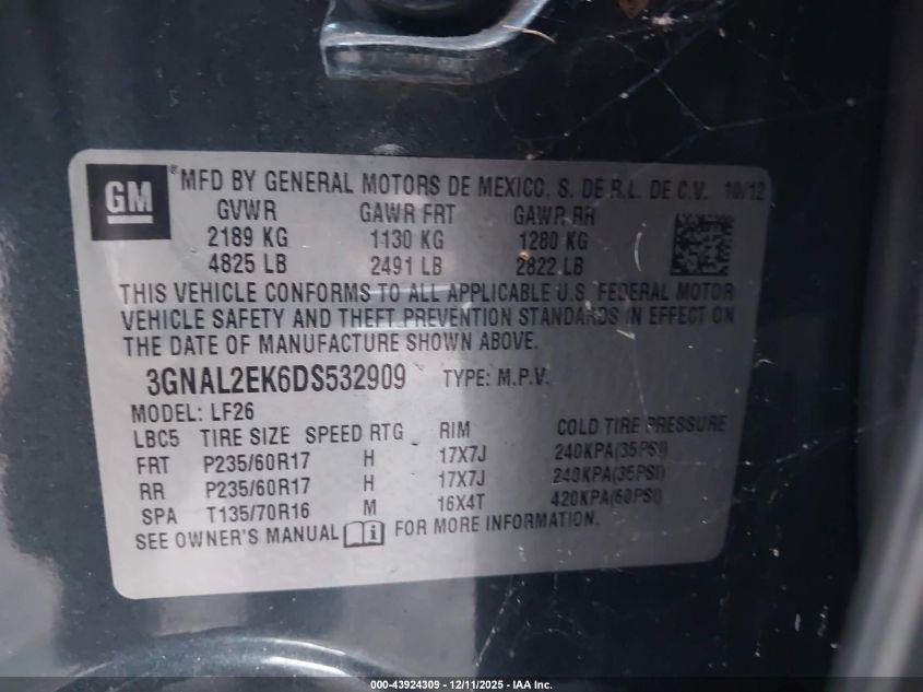 2013 CHEVROLET CAPTIVA - 3GNAL2EK6DS532909, колір - Сірий, 2.4, Бензин, Передній привід із США