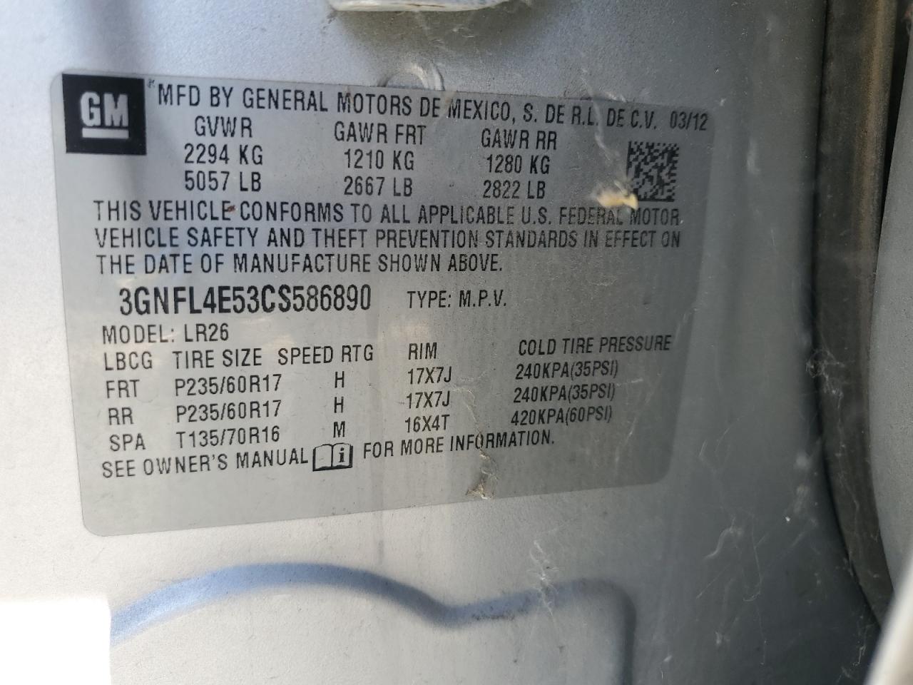 2012 CHEVROLET CAPTIVA - 3GNFL4E53CS586890, колір - Срібний, 3.0, Бензин, Повний привід із США