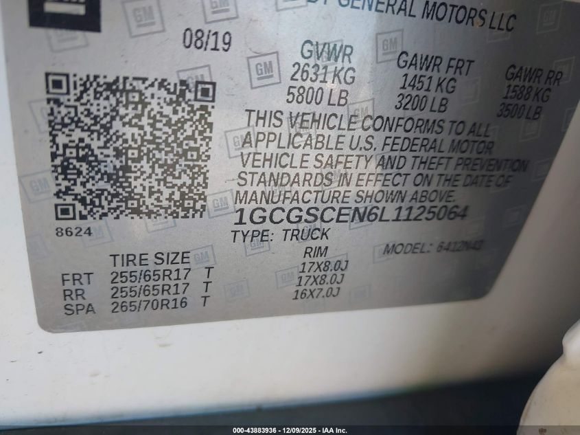 2020 CHEVROLET COLORADO - 1GCGSCEN6L1125064, колір - Білий, 3.6, Бензин, із США
