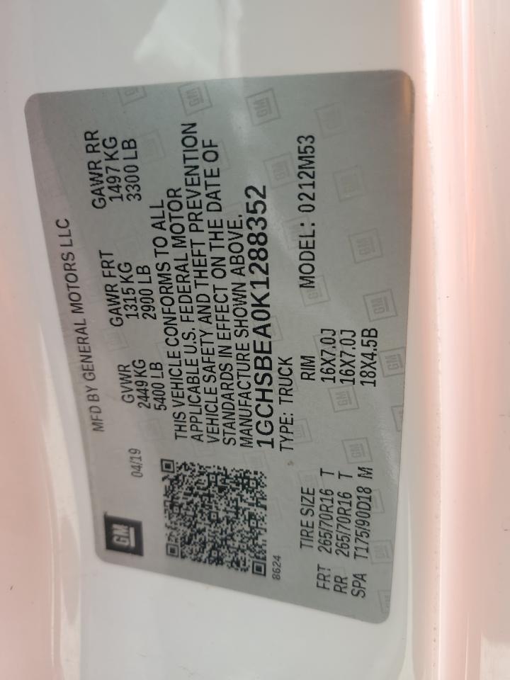 2019 CHEVROLET COLORADO - 1GCHSBEA0K1288352, колір - Білий, 2.5, Бензин, Задній привід із США
