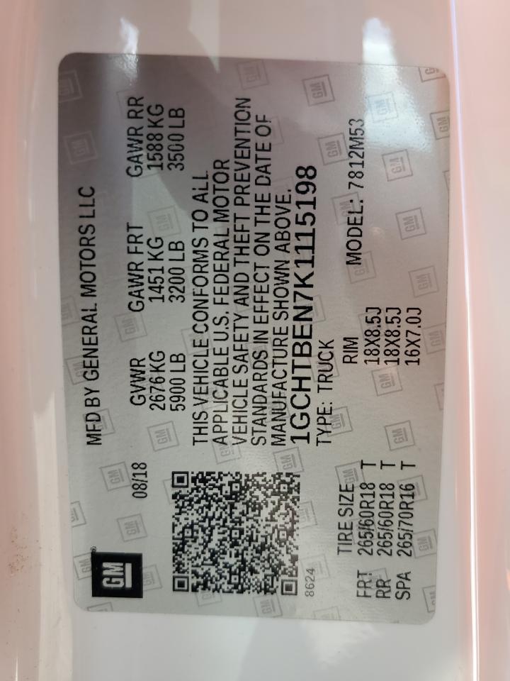 2019 CHEVROLET COLORADO - 1GCHTBEN7K1115198, колір - Білий, 3.6, Бензин, 4x4 з заднім приводом із США