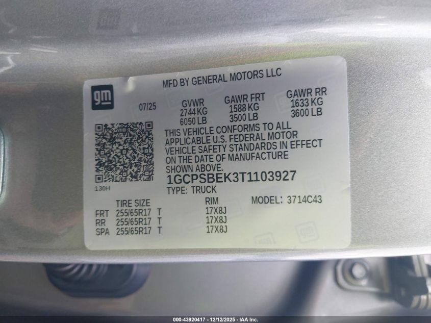 Колір СірийЦиліндри 4VIN 1GCPSBEK3T1103927Стан Заводиться та їде (перевірено)Ушкодження Передня або задня