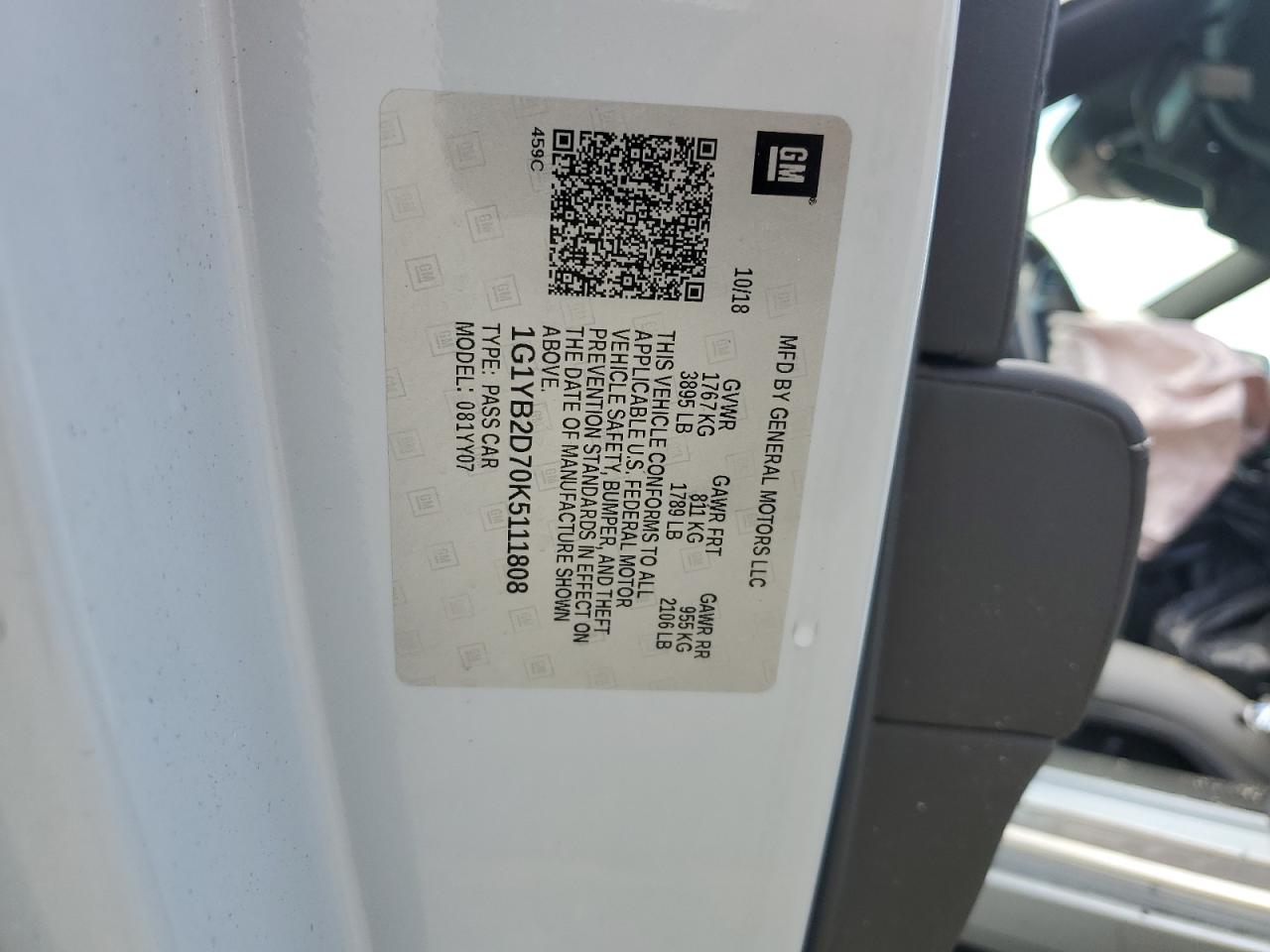 2019 CHEVROLET CORVETTE - 1G1YB2D70K5111808, колір - Білий, 6.2, Бензин, Задній привід із США