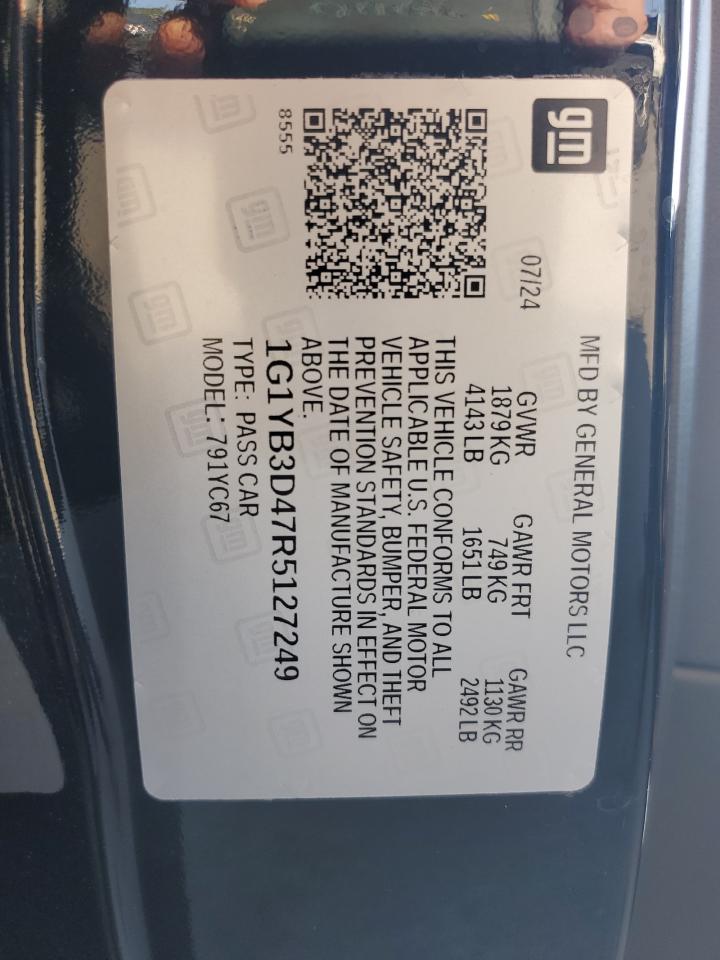 2024 CHEVROLET CORVETTE - 1G1YB3D47R5127249, колір - Чорний, 6.2, Бензин, Задній привід із США